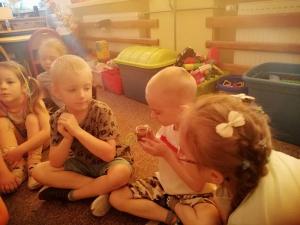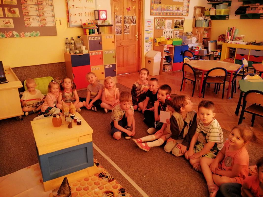 6 czerwca 2025 odbyły się w naszym oddziale warsztaty edukacyjne o pszczołach przeprowadzone przez panią Natalię Krawiec. Dzieci miały okazję poznać fascynujący świat pszczół. Dowiedziały się jak wygląda życie w ulu, kim jest królowa pszczół i jak powstaje miód. Zobaczyły z bliska ramki z woskiem, podkurzacz czy strój pszczelarza. Na zakończenie dzieci wykonały świeczki z plastra wosku oraz spróbowały miodu o różnych smakach, który przypadł im do gustu. To był dzień pełen ciekawostek, zapachów i słodkich wrażeń.
