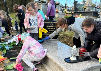 W poniedziałek, 27 października, z okazji zbliżających się Uroczystości Wszystkich Świętych i Dnia Zadusznego, członkowie szkolnego koła Caritas wzięli udział w akcji sprzątania grobów na cmentarzu parafialnym. Uczniowie z zaangażowaniem porządkowali zaniedbane mogiły, zapalali znicze i pamiętali o modlitwie za zmarłych. Po zakończonej pracy odbyło się ognisko integracyjne, podczas którego uczestnicy mogli odpocząć, porozmawiać i wspólnie cieszyć się atmosferą współpracy i życzliwości. To był dzień pełen refleksji, wspólnoty i dobrych uczynków.
